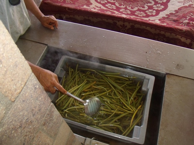 Il faut leur faire subir une mortification, qui va stopper la vie végétale de la gousse, et permettra une maturation contrôlée. C’est ainsi que débute le procédé élaboré en 1851 par le Réunionnais Ernest LOUPY à partir des connaissances mexicaines. Il consiste à rassembler les gousses dans un panier, qui peut en contenir environ 15 kilos, et à plonger le tout dans un bassin d’eau à 65 degrés pendant trois minutes.